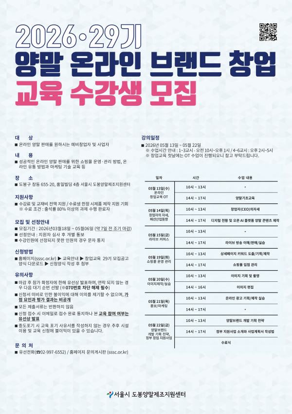 - 2026년 03월 18일 ~ 05월 06일(조기마감 가능)